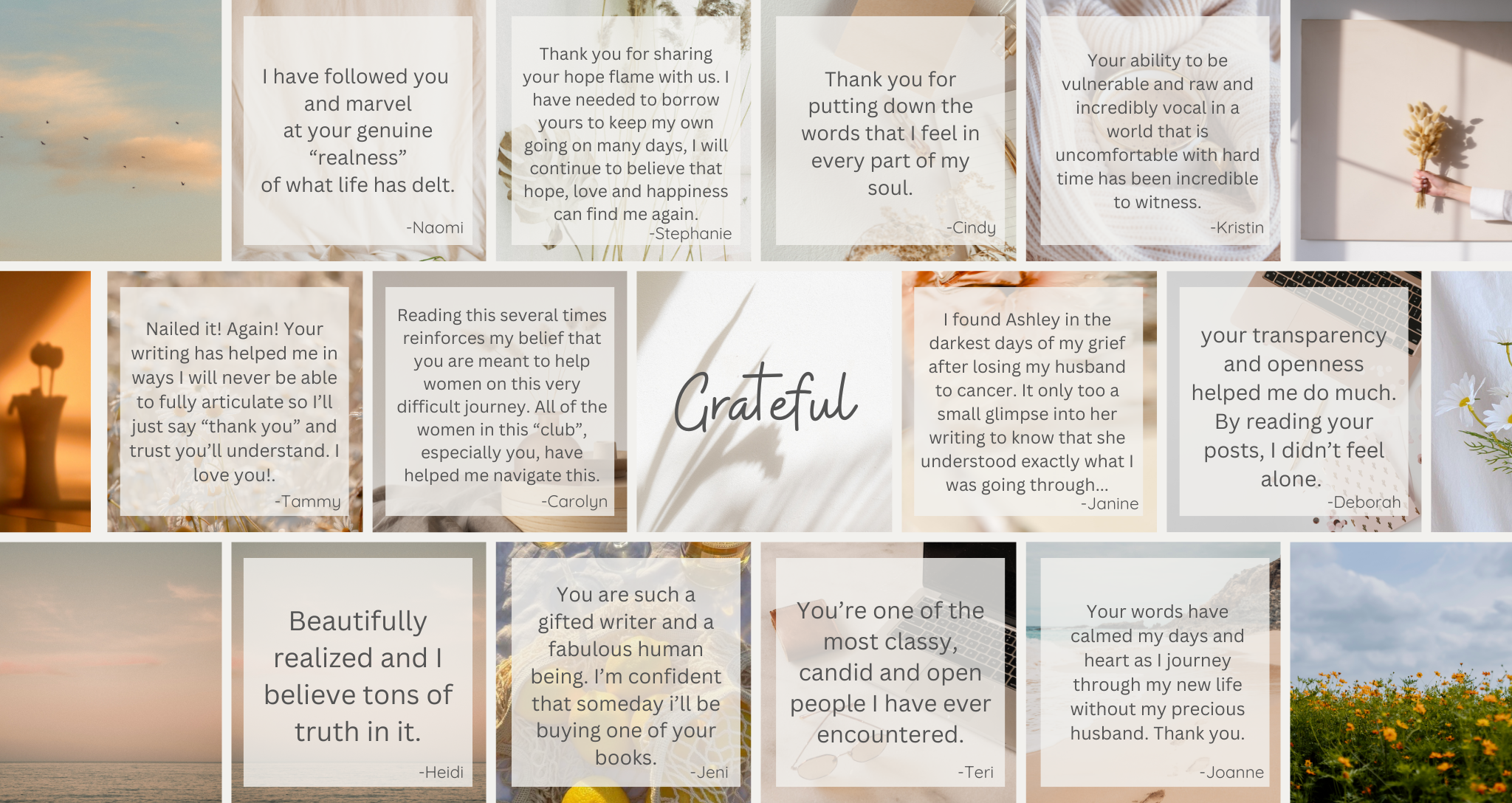 Thank you for sharing your journey with us, It’s hard for others to understand the complexity of such tremendous loss and starting your life all over again. I just want to Thank you for sharing hope & your vulnerability.